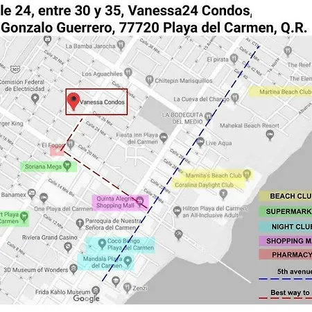 Примерно в 2 км от апартаментов находится Пляж Пунта-Эсмеральда, а всего в 200 метрах — DAC Verduras y Frutas. Чтобы добраться до самого сердца Плая-дель-Кармен, необходимо пройти пешком 10 минут. Гостям понравится расположение вблизи Торгового центра Quinta Alegria.
